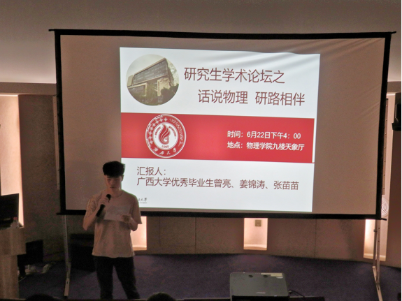 6月22日下午,由物理科学与工程技术学院举办的 “物华春晖”研究生学术论坛在学院九楼天象厅举办,部分研究生参加了此次活动。本次论坛特别邀请了2021届英国上市公司365优秀毕业生曾亮、姜锦涛和张苗苗同学介绍科研经验和科研成果。