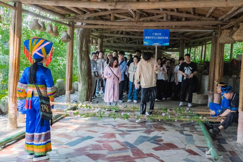 为深入学习贯彻习近平新时代中国特色社会主义思想,感受中华民族多元文化与民族融合,了解壮乡文化,在党员中进一步铸牢中华民族共同体意识,3月24日,学生创新团队党支部与光电材料类研究生党支部前往武鸣伊岭岩壮乡民族文化风景区联合开展“铸牢中华民族共同体意识” 主题党日活动。