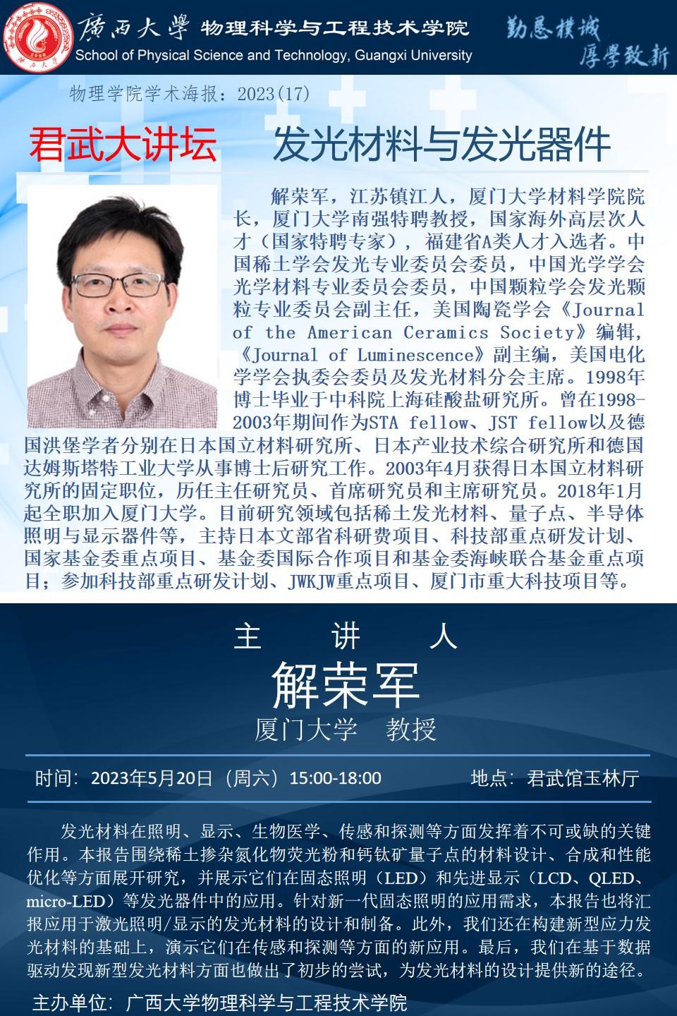 下一篇:2023年学术报告系列之16:海外名师大讲堂——智能功能材料在发光和薄膜异质结器件的应用