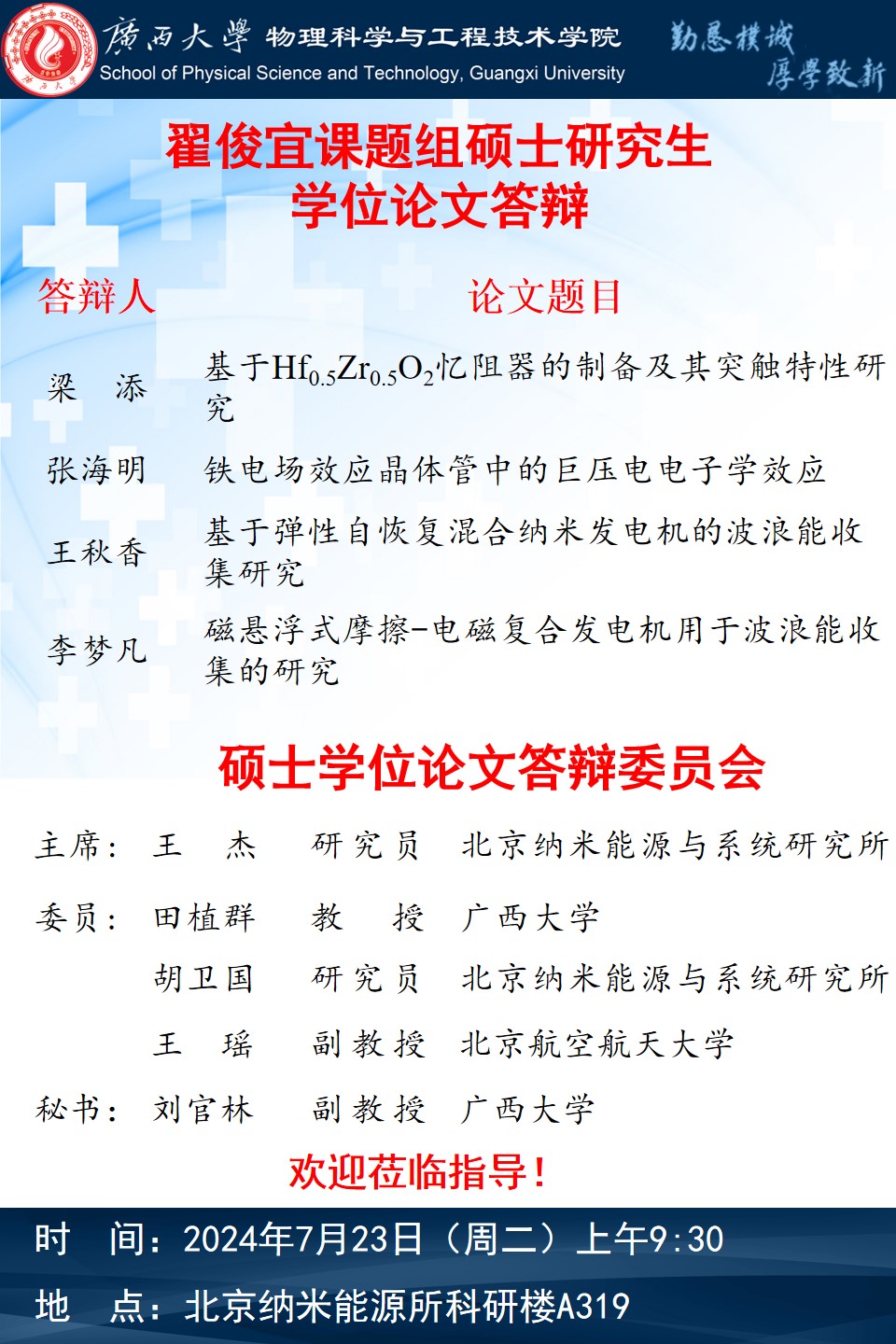 下一篇:胡新珂、黄欣博、韦逸宁硕士学位论文答辩