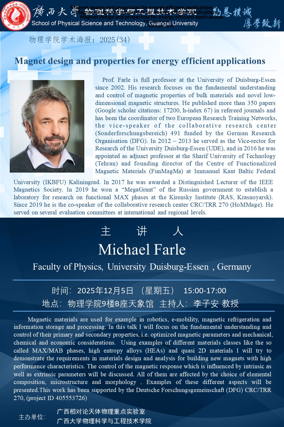 下一篇:2025年学术报告系列之33:Gireen synthesis of multi-dimensional carbon nanocomposites bridging the nano- and real-worlds