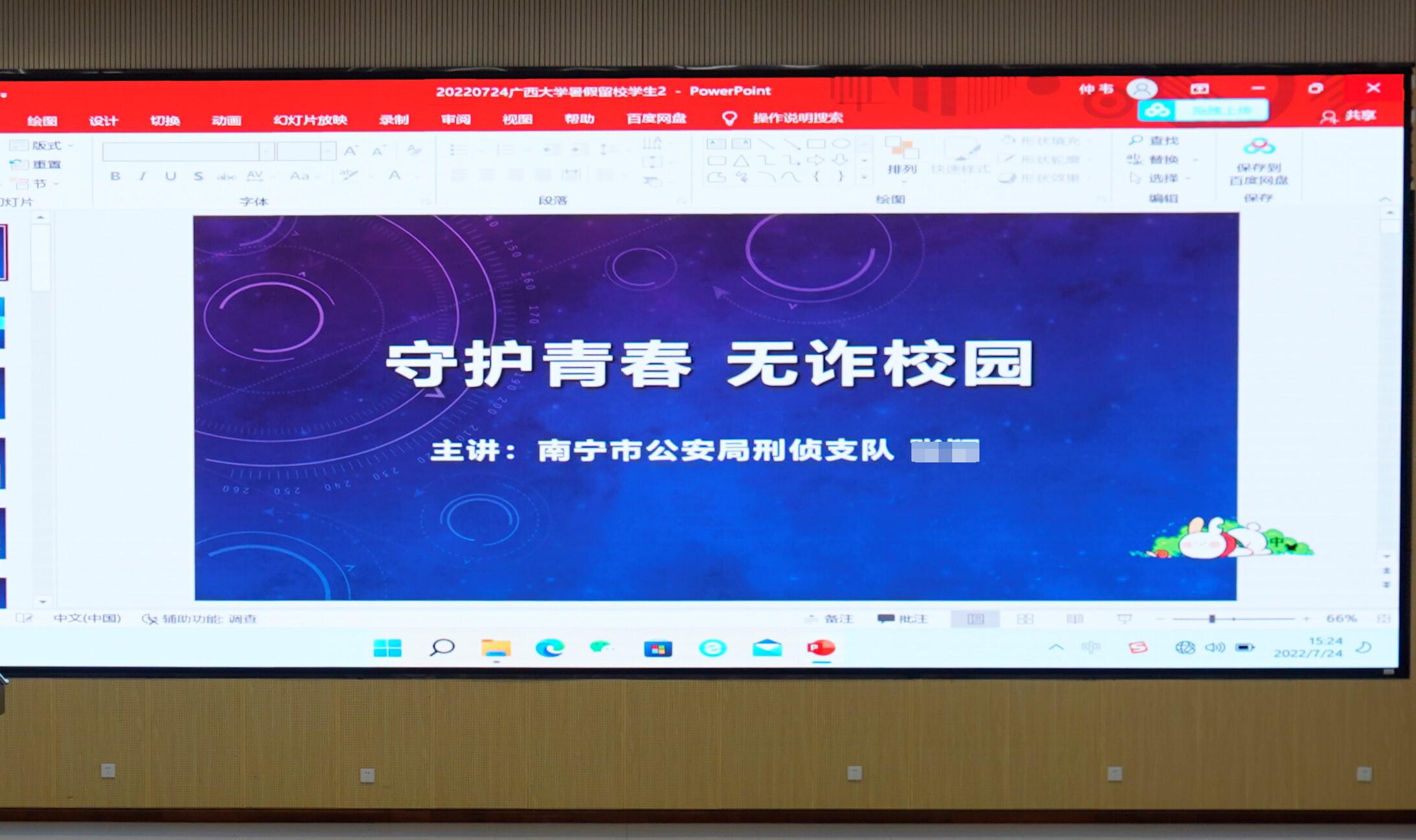 为普及反诈骗知识,降低大学生受诈骗率,2022年7月24日,南宁市公安局刑侦支队在资环材学院123报告厅举办“守护青春 无诈校园”反诈宣传讲座,我院本科生与研究生学生代表前往学习。