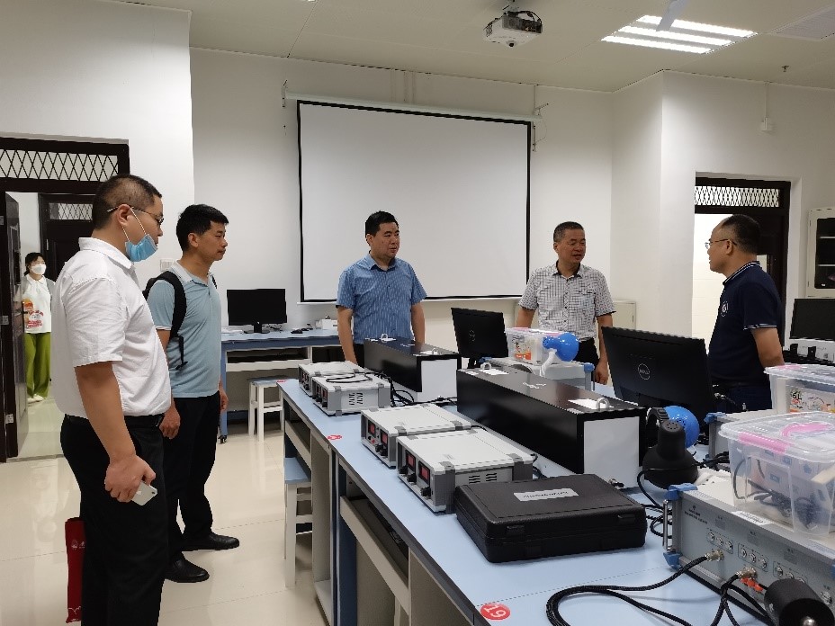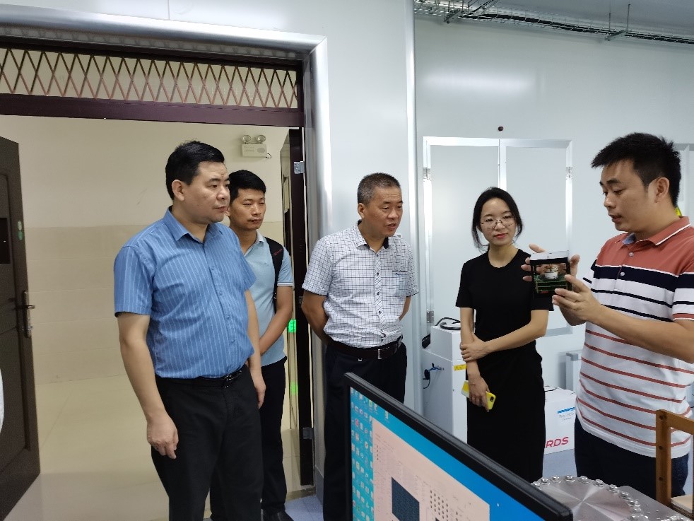 肖剑荣院长一行首先前往我院洁净实验室、物理实验实训中心、蓝色能源实验室、空间粒子探测实验室进行了实地考察调研。