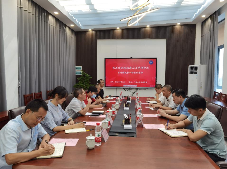 9月16日上午,桂林理工大学理学院肖剑荣院长一行到我院考察调研。学院党委书记袁涛出席座谈会并致欢迎辞,学院常务副院长王祥高主持座谈会。