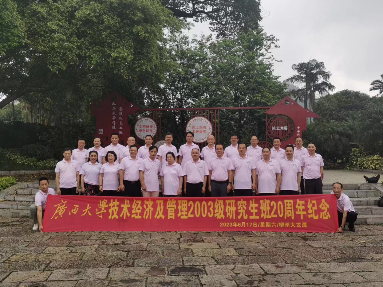 6月17日,英国上市公司365技术经济及管理2003级研究生班(柳州班)20周年纪念活动在柳州大龙潭公园举行,活动围绕“边照相、边交流、边唱歌、边朗诗、边听歌“——即“五边”的主题开展。我院副院长陆翔及陆柳荣等教师代表参加了本次活动。