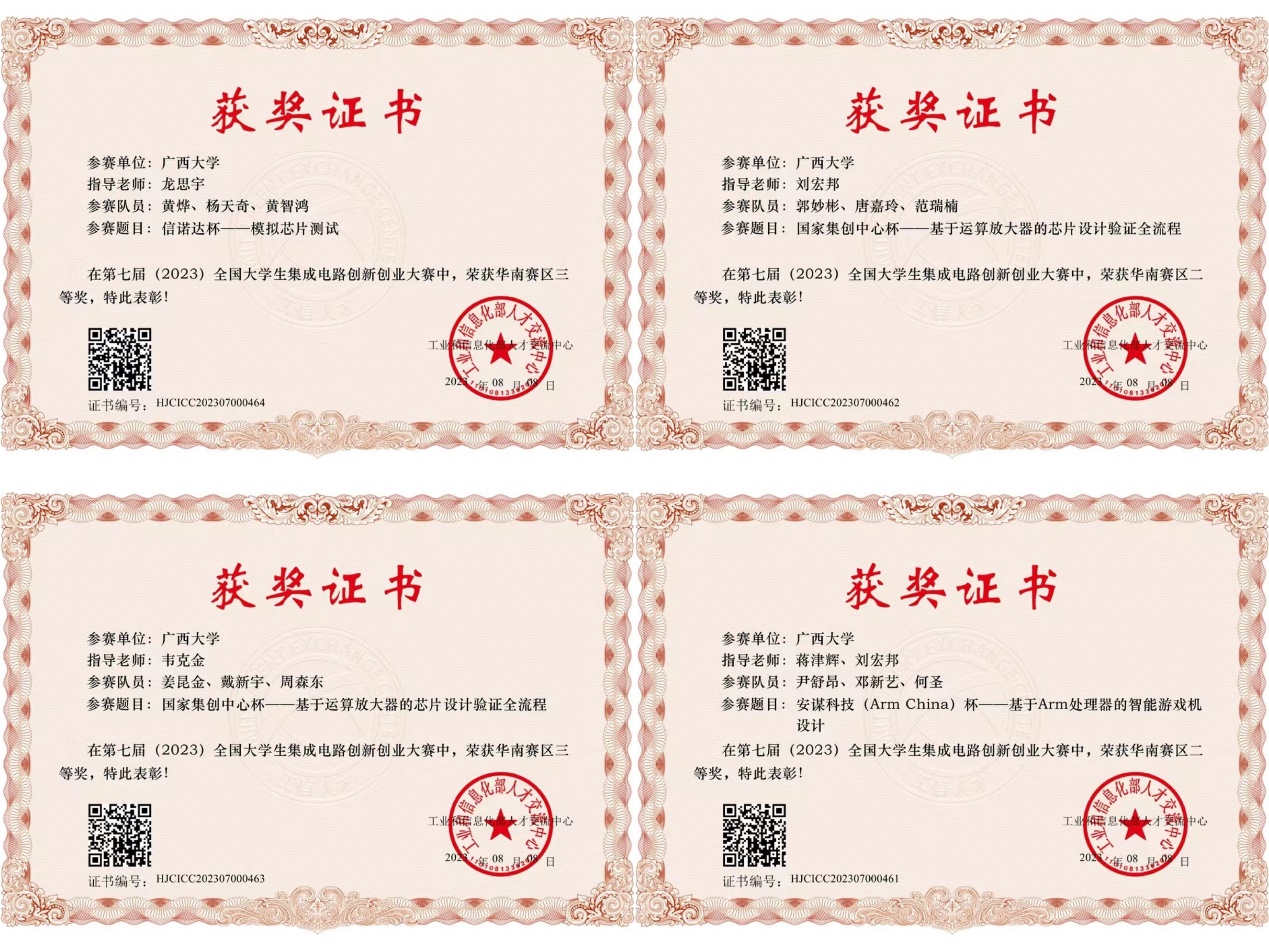 近日,第七届全国大学生集成电路创新创业大赛获奖名单正式公布。这是我院首次参加集成电路大赛,经过激烈角逐,我院学子斩获华南赛区二等奖2项、三等奖2项。此外,我校还获得了华南赛区优秀组织奖。