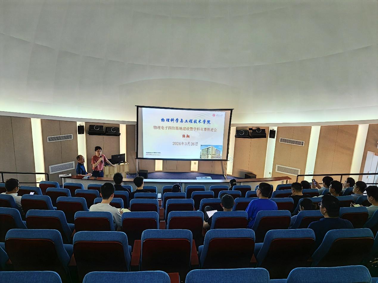 为深化学院创新创业教育教学改革,激励学院教师更多参与学科竞赛等学生四创指导工作,2024年3月26日下午,物理学院特邀请陆翔副院长对学院四创基地建设与学科竞赛进行整体汇报,林达斌副院长主持报告,学院近四十位专任教师听取了汇报。