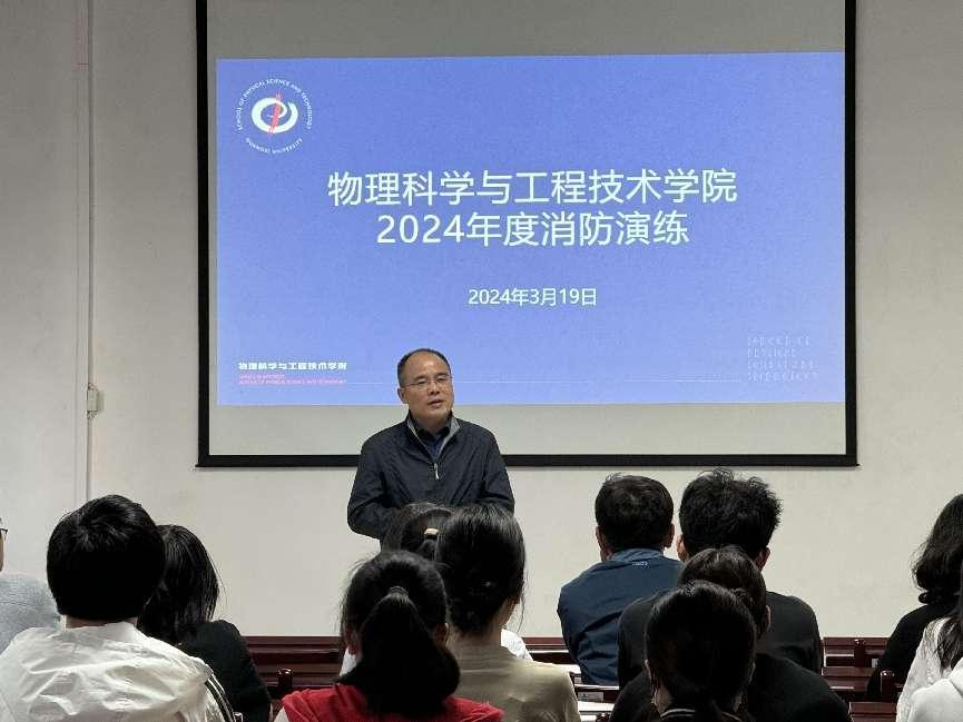 此次消防演练分为理论与实操两个部分。理论部分由副院长陆翔主持,保卫处黄光电主讲。陆副院长表示学院一直高度重视消防安全工作,各实验室定期组织师生开展相关安全和实验操作技能培训,严把实验室准入和安全检查,并希望大家认真对待,积极参与此次演练。黄光电老师为大家讲解消防知识。内容主要分为消防安全知识科普,火灾预防的基本概念,灭火的基本方法,火场逃生知识指南四个部分。