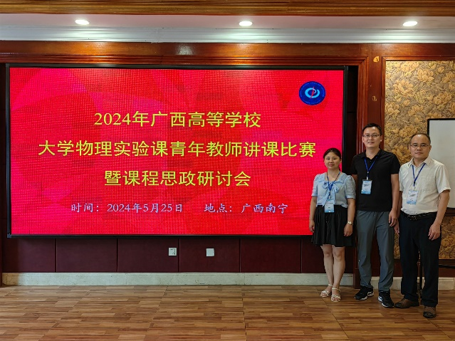 5月24日-27日,由广西物理学会、广西本科高校物理学类教学指导委员会主办,我校承办的2024年广西高等学校物理实验课青年教师讲课比赛暨课程思政研讨会在南宁市举行。我院物理实验中心选派的黎丽君、徐守磊两位老师,与来自全区10余所高校的青年教师同台竞技。经大学物理教学指导委员会专家的两轮严格评选,徐守磊老师获广西区一等奖,并获推荐参加2024年全国高等学校物理基础课程青年教师讲课比赛中南地区比赛,黎丽君老师获得二等奖。