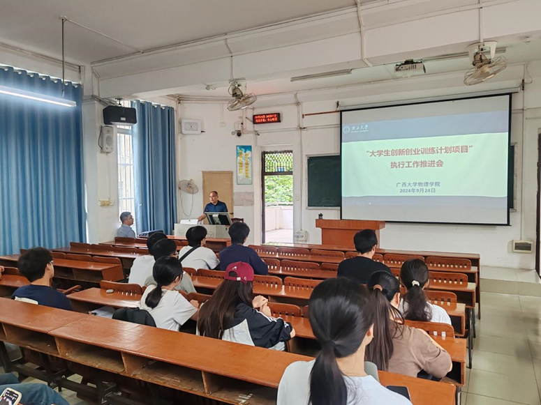 为进一步推进大创项目的顺利实施,提升项目执行质量,2024年9月24日下午,我院在西2-201教室召开了全体在研大创项目执行工作推进会,学院副院长陆翔、物理系副主任黄永波出席会议,电子系副主任曹盛主持会议。