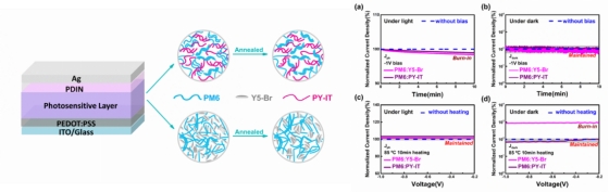 针对以上问题,我院薄膜光伏团队制备了一种全聚合物光电探测器,实现了宽光谱响应和快速的响应时间,且器件在电、热应力下仍能保持高检测性能,表现出显著的稳定性。用全聚合物体系是提高有机光电探测器稳定性的有效策略,并为未来有机光电探测器的商业应用提供了有用的指导。