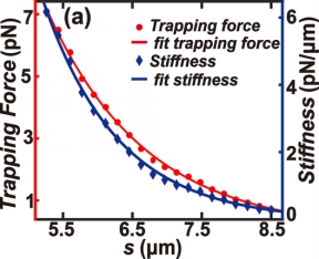 图 1 圆皮尔斯光场对米氏颗粒的操控性能与空间分布因子的指数衰减关系。