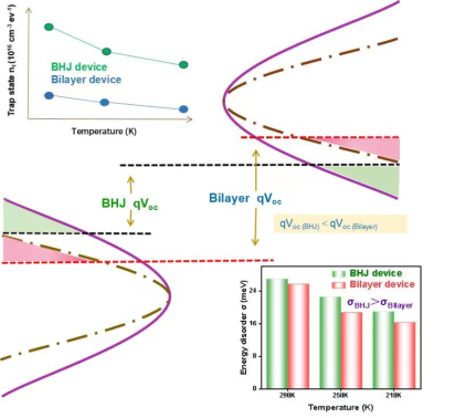 有机太阳能电池(OSCs)由于其可调的能级结构、合成成本较低、质量轻、柔韧性等优点而受到广泛关注,尤其是非富勒烯受体(NFA)的出现将有机光伏电池的效率提升了20%,其中,给体-受体之间的电离能(IE)偏移是影响效率的主要原因之一。然而,目前高效的NFA OSCs的活性层主要由给受体混合在大块区域的体异质结结构(BHJ)组成,因此会导致局部能级紊乱,为研究IE对OSCs效率影响的研究添加了困难。