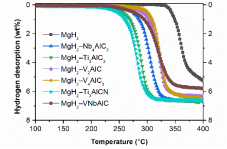 我院新能源团队研究发现许多MAX相材料对MgH2同样具有优异的改善效果(图1),尤以Ti3AlCN和TiNbAlC对MgH2的改善效果最为明显。微观催化机理研究表明,Ti3AlCN可以作为MgH2形核和长大活性位点,而TiNbAlC会在储氢材料吸放氢过程中转化为Ti的氢化物相,对MgH2的吸放氢过程起到“氢泵”的作用。