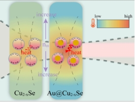等离子体铜硫族化合物(Cu₂ₓE,其中E代表S、Se、Te)纳米粒子(NPs)在光热疗法与光声层析成像领域具有非凡潜力,这主要归功于它们在第二个近红外生物透明窗口内所展现的独特局部表面等离子体共振(LSPR)吸收特性。本研究中,研究小组成功合成了亲水性的Au@Cu₂ₓSe核壳纳米粒子,并配制了相应的极性悬浮液。当532nm或1064nm的激光束穿过Au@Cu₂ₓSe悬浮液时,研究小组观察到了由热效应非线性引发的显著负透镜现象,该现象随着纳米粒子浓度或激光功率的提升而愈发明显。同时,与纯Cu₂ₓSe悬浮液相比,Au@Cu₂ₓSe悬浮液中的负透镜效应更为突出。通过Z扫描测量,研究小组进一步发现,Au@Cu₂ₓSe的正非线性吸收系数相较于Cu₂ₓSe提高了20倍,这得益于核壳纳米粒子所展现的双LSPR吸收带,分别由Au核和Cu₂ₓSe壳的贡献形成。此外,在Au@Cu₂ₓSe核壳纳米粒子中,与近红外二区(NIR-II)LSPR波段相关的摩尔消光系数有所提升,这表明其吸收效率更高,与观察到的光学非线性传输行为一致。
