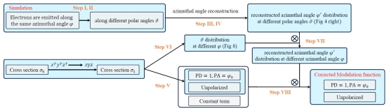 在细致的理论推导与模拟分析后,发现了光电子发射方位角重建是影响理论计算的斜入射调制函数的主要因素。在此基础上,文章提出了一种对斜入射调制函数修正的方法,该方法从理论计算出发,结合了模拟器模拟,具体流程如图1所示。之后,我们在模拟数据和实验数据中进行了大量测试,测试结果表明了该偏振重建方法的准确性及高效性。此外文章中还对斜入射偏振重建中的所有可能存在的系统误差进行了分析。