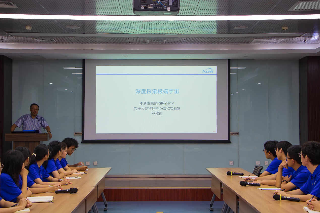 At the Institute of High Energy Physics of the Chinese Academy of Sciences, Academician Zhang Shuangnan delivered an academic report on deep exploration of extreme universe for students. In this report, students experienced how scientists uncover the mysteries of the universe and explore the mysteries hidden under extreme conditions. Subsequently, Liu Hongbang, Vice Dean of the School of Physics, led the students into the High Energy Physics Laboratory and explained to them the detection principles of these precision instruments.