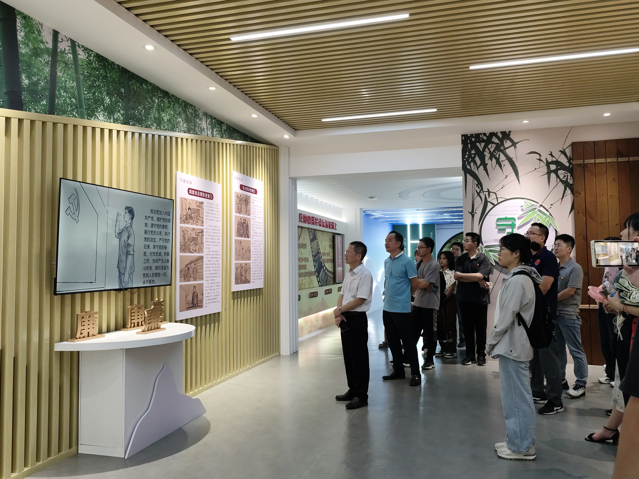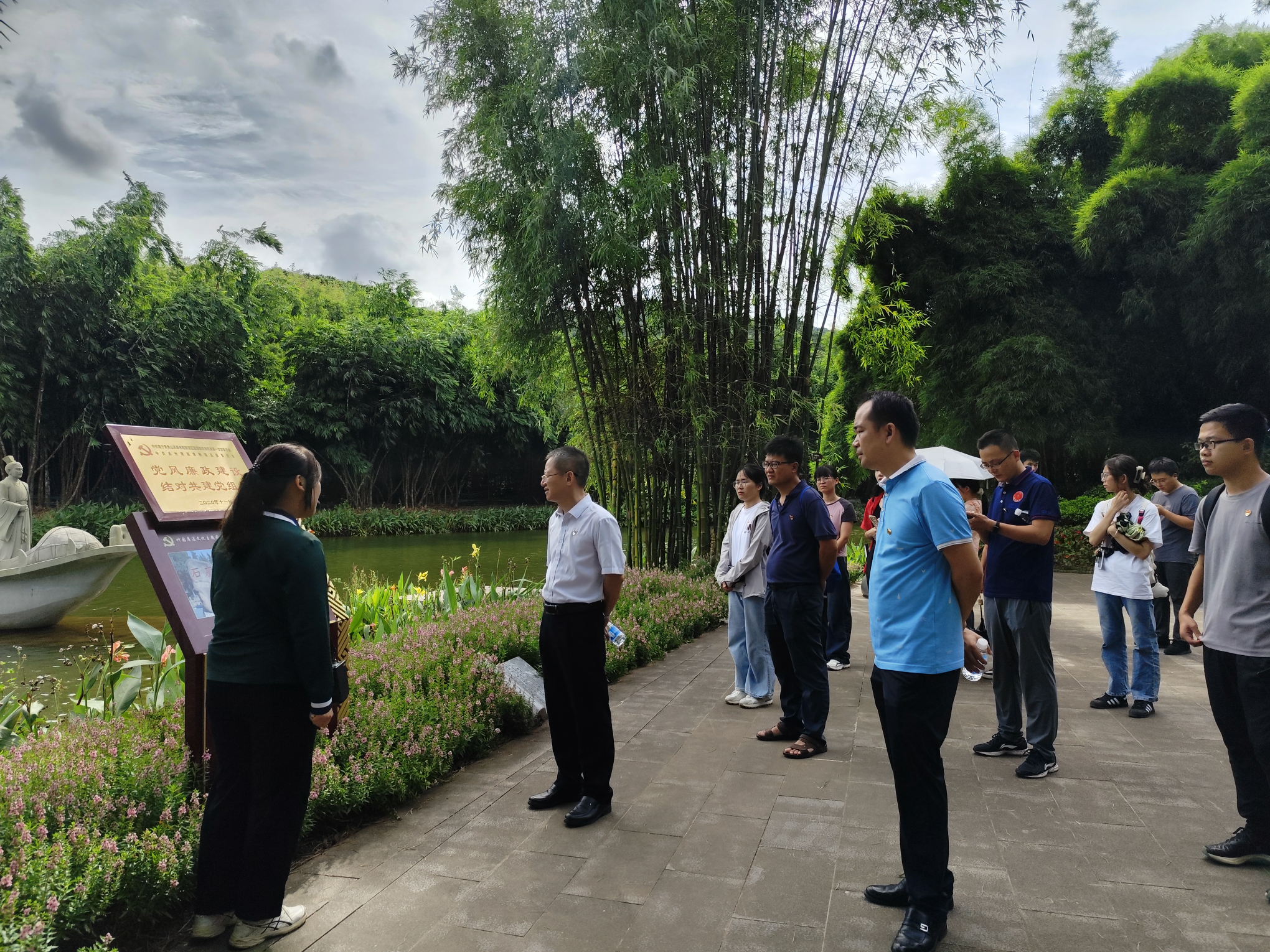 Bamboo had knots before it was unearthed. At the Bamboo Garden Clean Culture Education Base, multiple sets of ancient celebrity stories and sculptures depicting officials' integrity, as well as calligraphic carvings by literati, create a strong atmosphere of "praising integrity with bamboo, praising integrity with bamboo, and passing on integrity with bamboo". Through the vivid explanation of the guide, party members not only appreciated the integrity and resilience of bamboo, but also learned about the ancient Chinese stories of clean officials and the past generations of clean officials in Nanning. They deeply understood the bamboo integrity spirit of "two sleeves of clean air, integrity and honesty" and the noble qualities of being honest, diligent, and cultivating virtue with integrity.