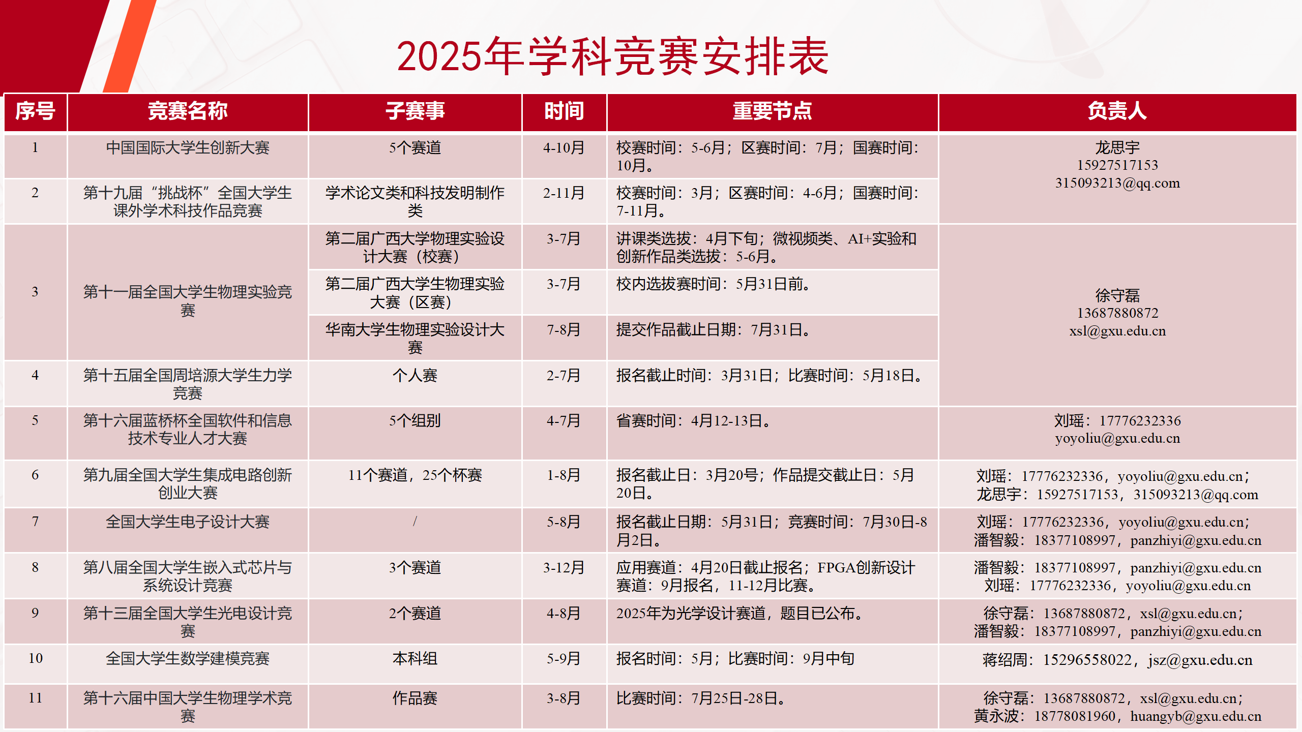 2025年学科竞赛安排表